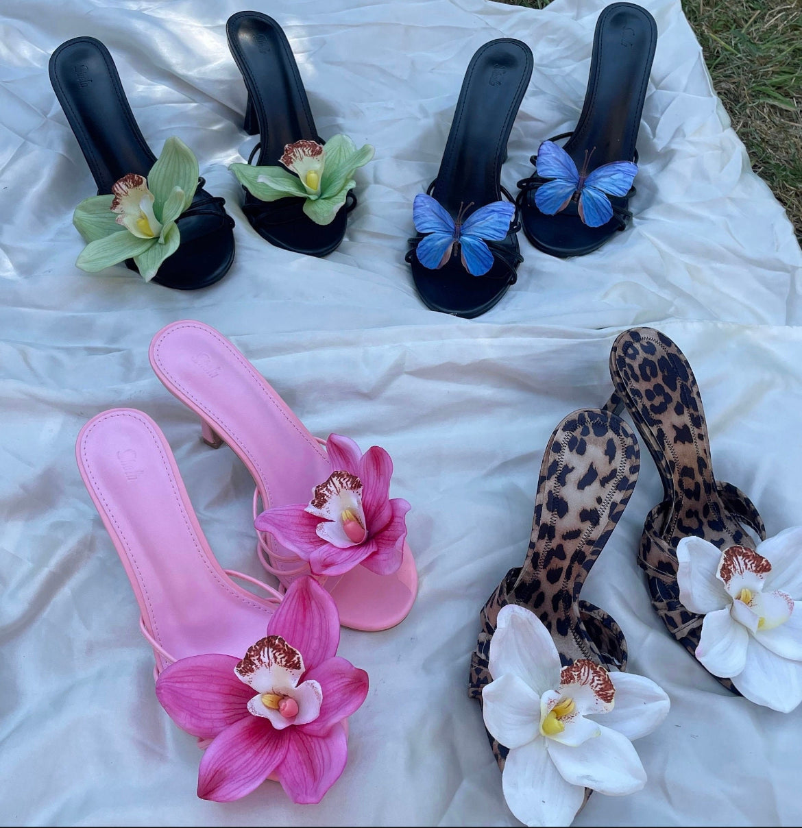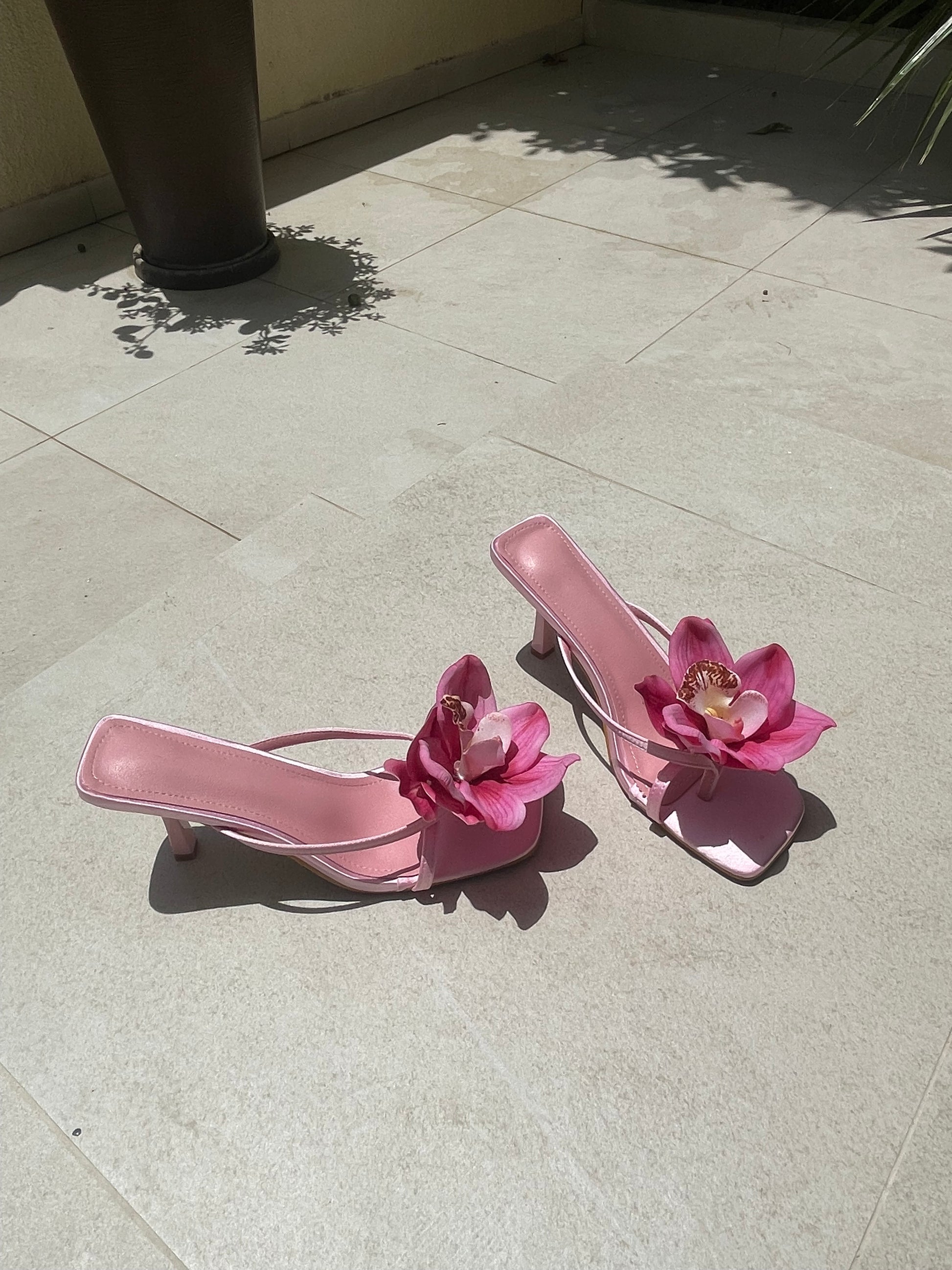 Angelina Light Pink Cymbidium Orchid Open Toe Sandal Heels 🌴🥥🌺🥭