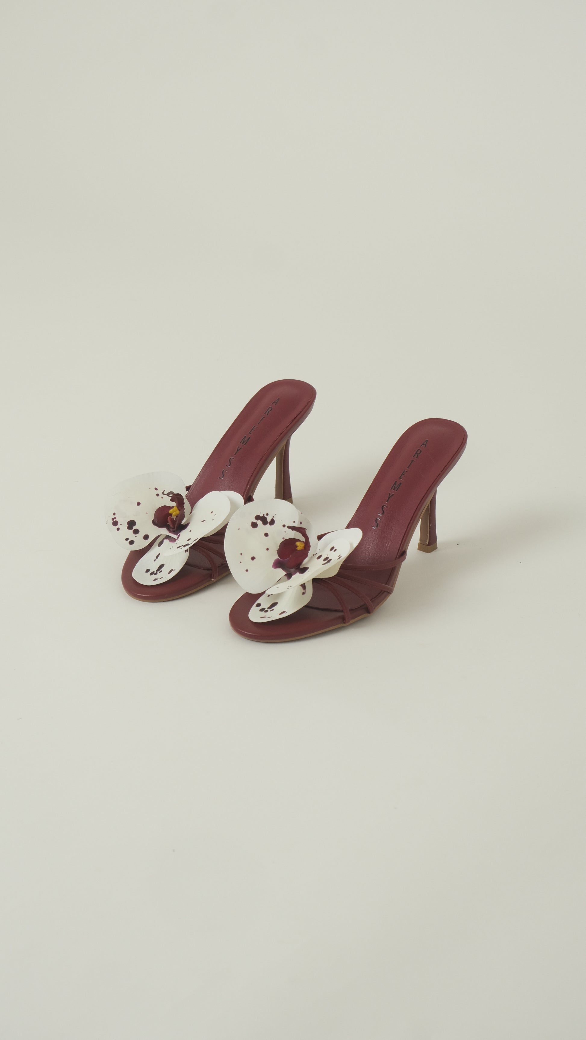 Set on a refined 3.5-inch heel, the design elongates the leg while remaining effortlessly wearable. Each pair is handcrafted, with floral detailing designed to mirror the look and feel of real orchids, subtle, feminine and timeless.