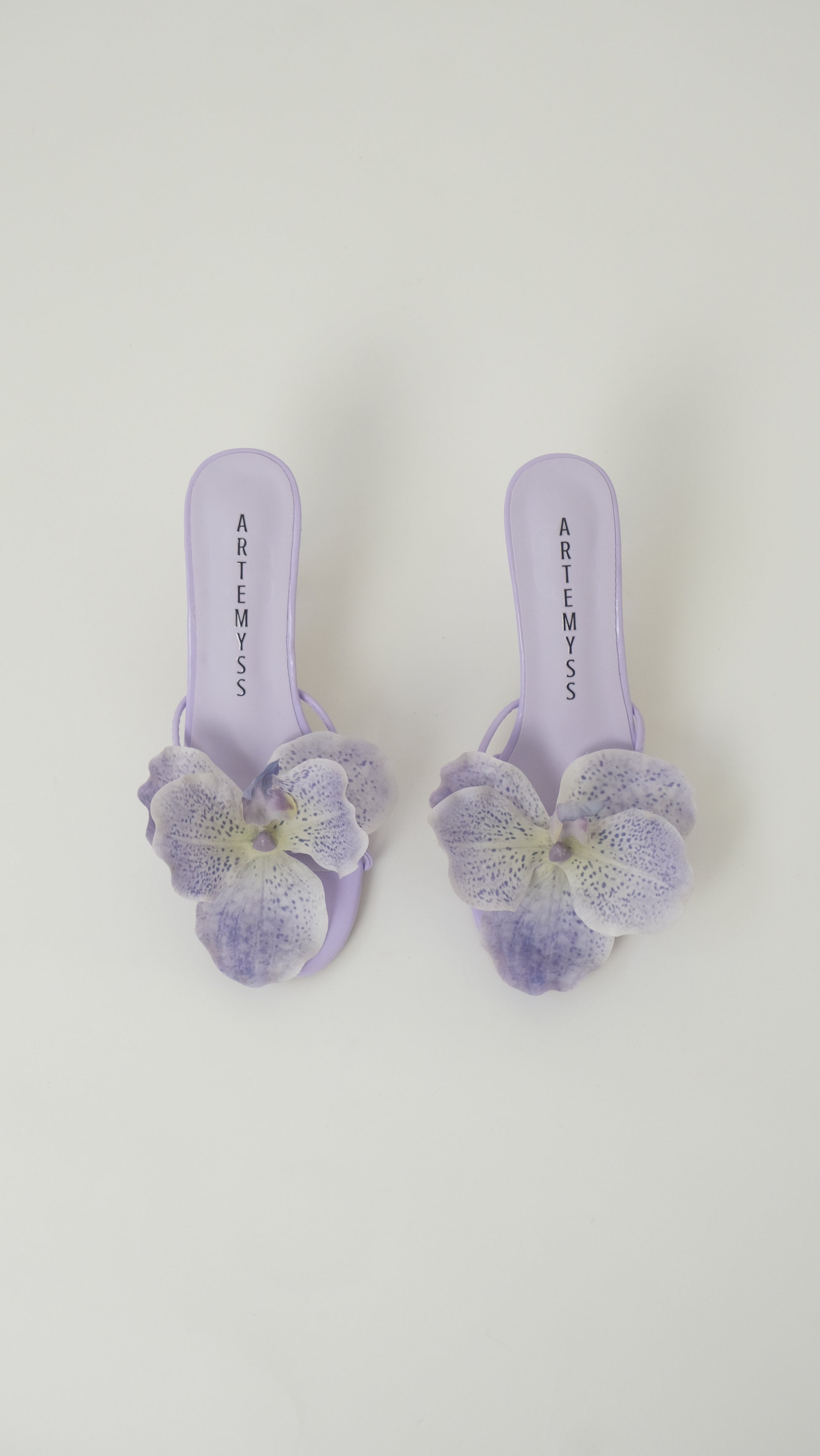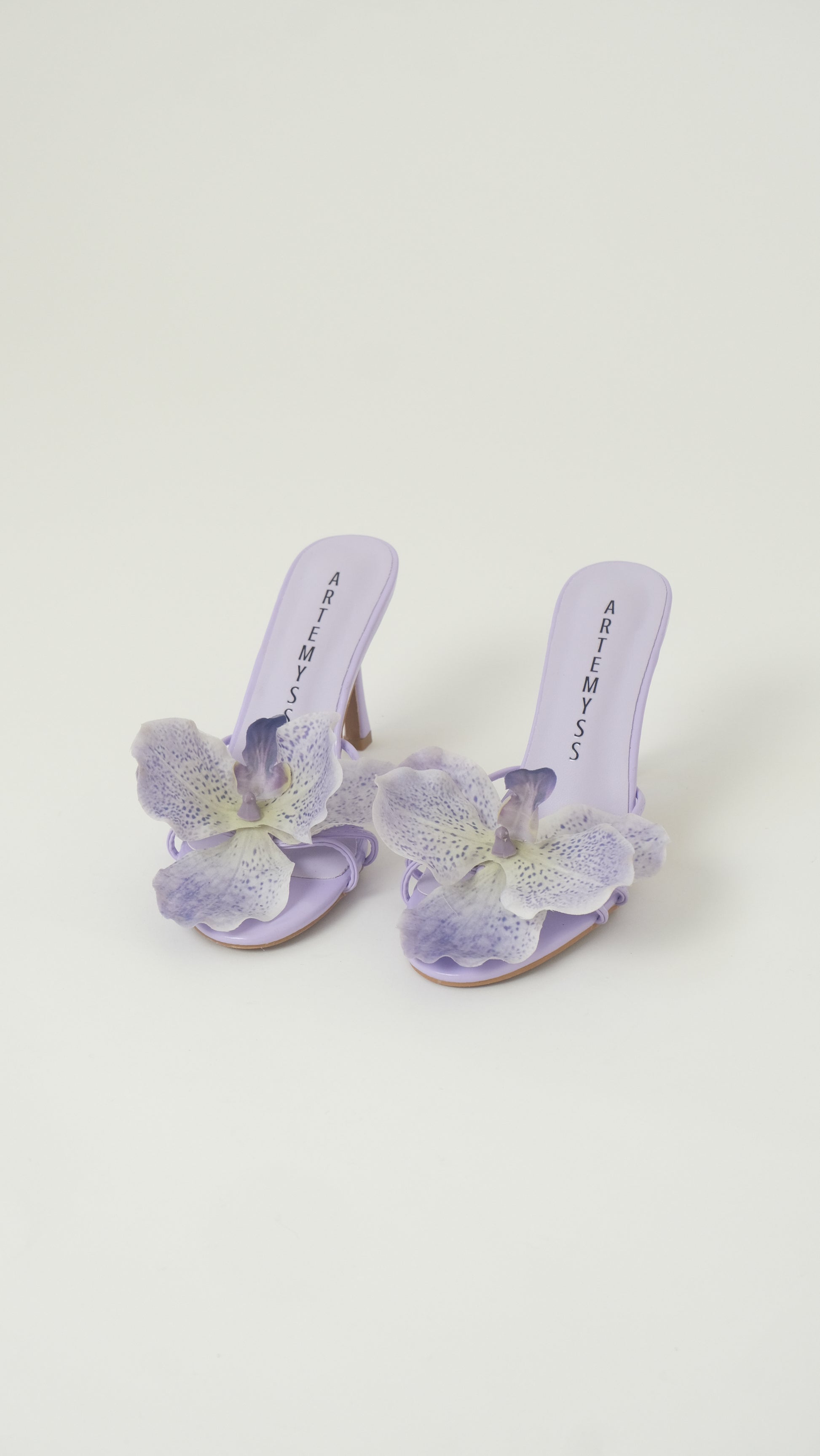 The Genevieve sandal is designed with understated elegance in mind. Featuring a sleek double-strap silhouette, this open-toe heel is finished with delicately placed, real-touch orchid florals that echo the softness of nature.