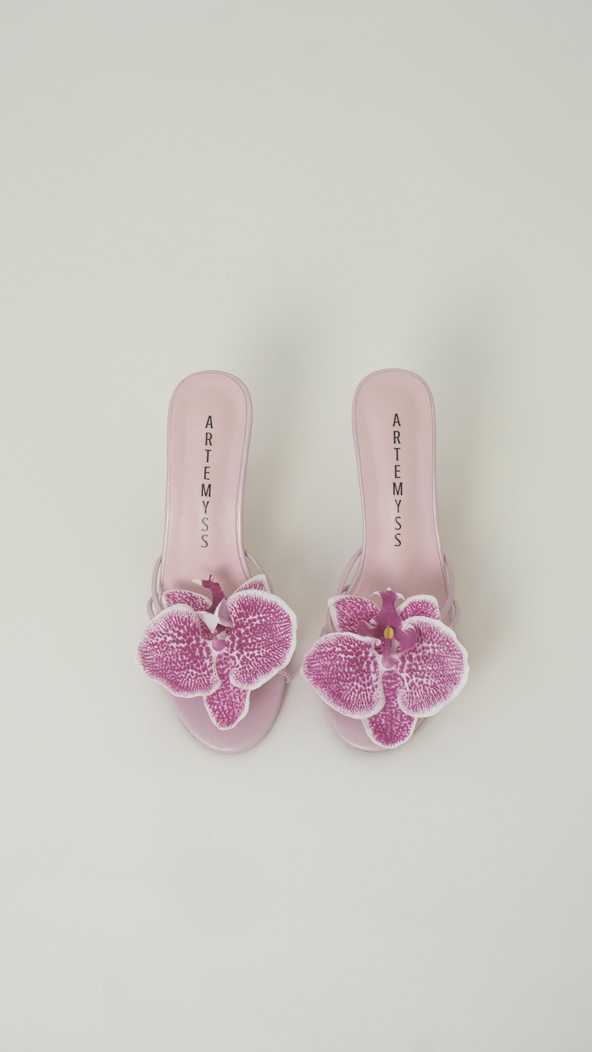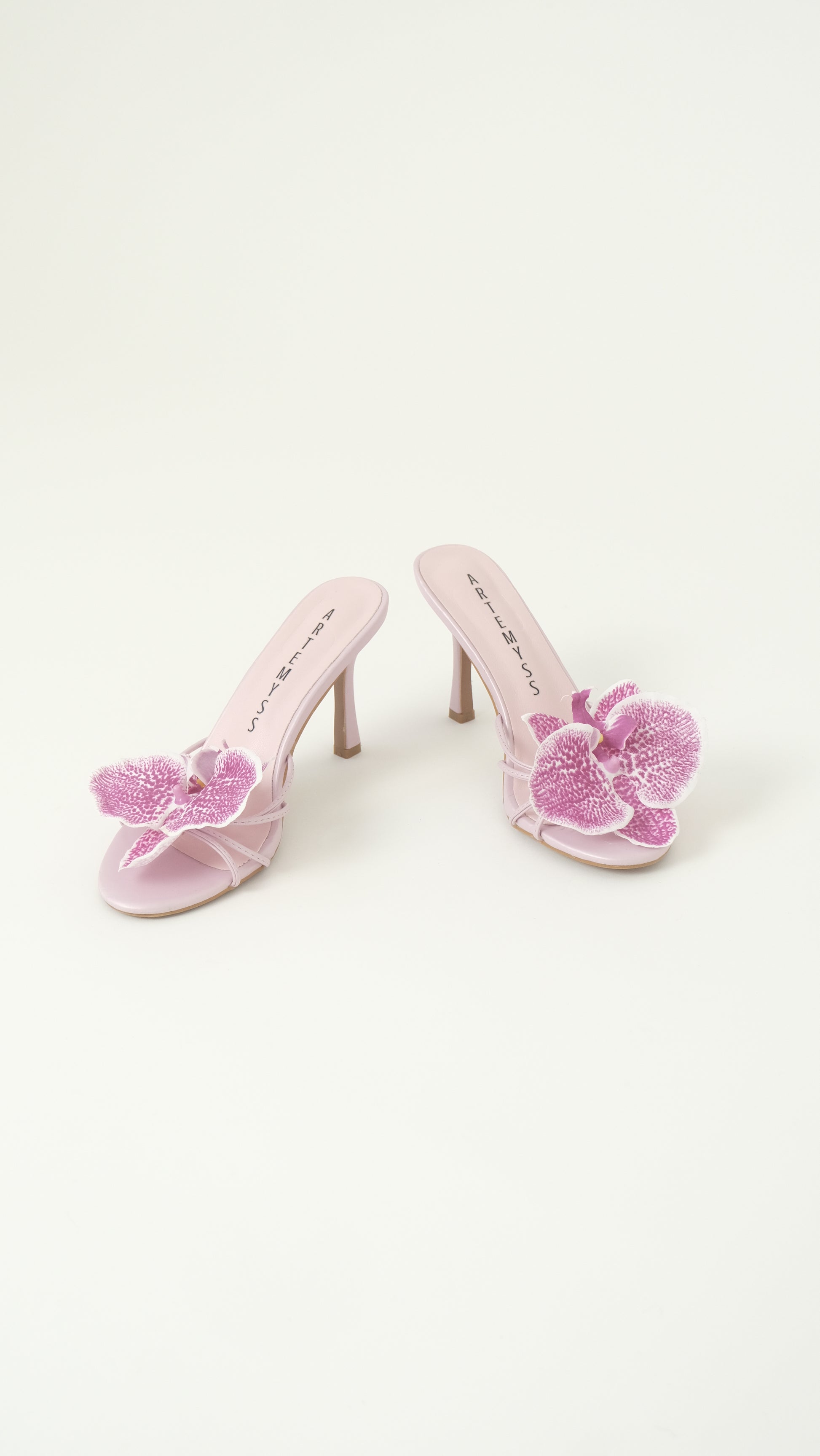 The Naomi sandal is designed with understated elegance in mind. Featuring a sleek double-strap silhouette, this open-toe heel is finished with delicately placed, real-touch orchid florals that echo the softness of nature.